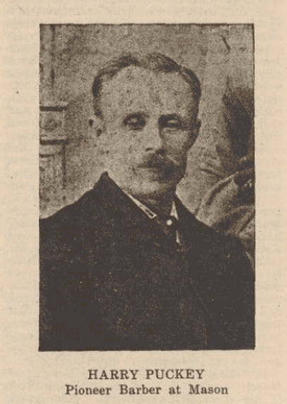 Among the first residents of the town of Mason were James E. Ranck, today referred to as "the father of Mason," Major David Doole, William Koock, Christie Crosby, Wilson Hey, and many others, all of whom have passed on to their eternal abode. In this sketch of the early history of Mason it will be impossible to make even brief mention of all of these pioneers, but it is my purpose to mention the names of all that can be obtained, and give as much of their history and the part they had in the establishment of civilization here as it is possible to do so. To give the history of Mason county in detail, recording every incident of historical value would be a stupendous task, and would require several large volumes to contain it. It is not my purpose in this article to give events in chronological order, but to record them wherever they may fit into the best advantage.