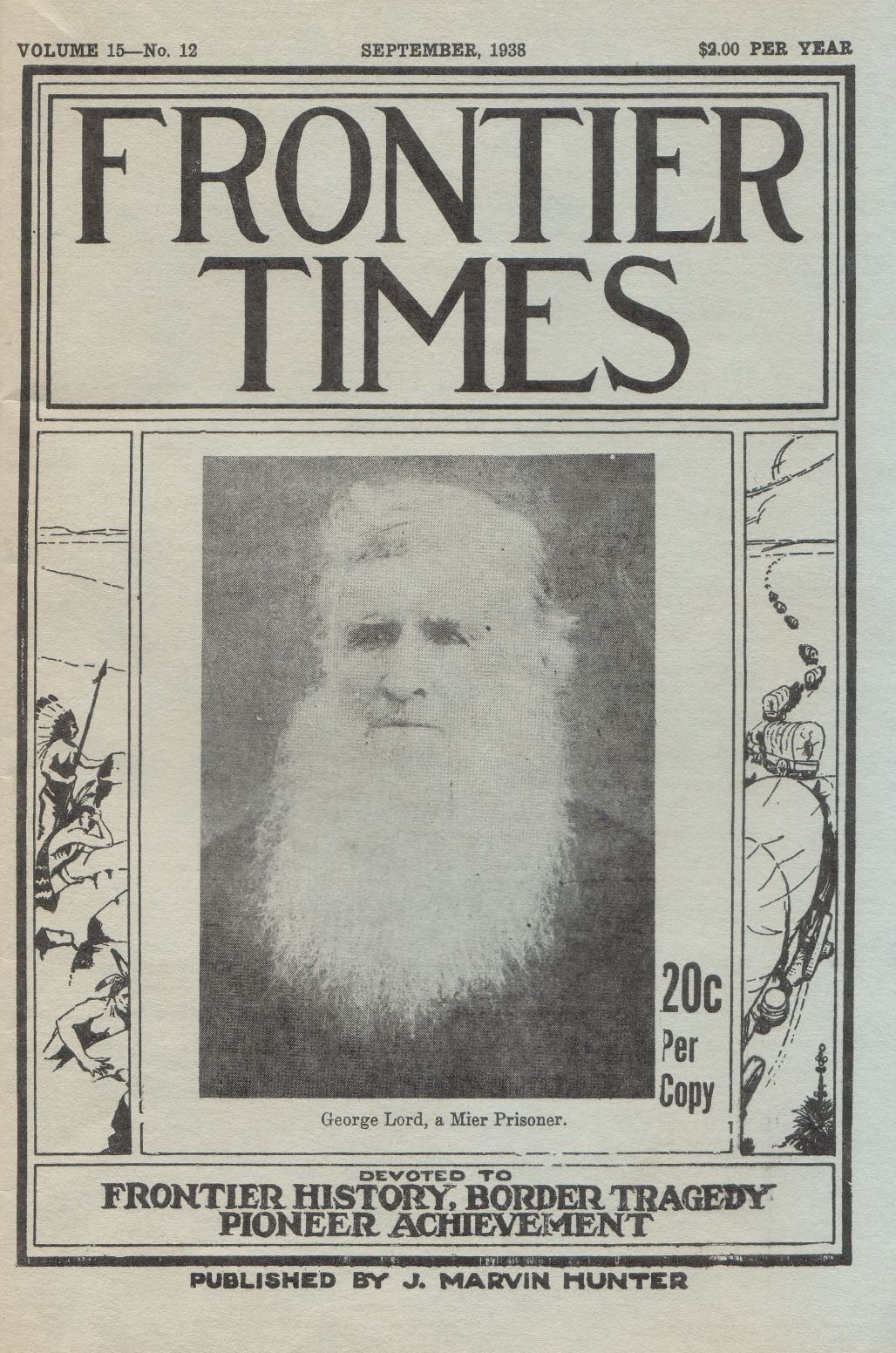 When a life work has been completed and its fruits have been garnered, the records of its incidents remain to tell the story of its success; and when the measure of that life has reached its ultimate limit of years, as well as its perfection in fulfillment of duty, a title to distinction has been earned. Such was the life and history of George Lord, whose honored memory claims the tribute of this fine article. George Lord was reared in England, where he received a very good education. He took passage for America in June, 1834, landed in Canada, and lived there two years. Then he went to New Orleans, where he worked on Mississippi steamers. In December, 1836, he joined a company of seventy-five men under Captain Lyons, and they came to Texas to take part in her war for independence, landing at Galveston in February, 1837. This very lengthy and detailed article also includes account of the Mier imprisonment written by Mr. Lord himself. The article includes recorded statements of the men who drew the “black bean” and is one of the most detailed of the many accounts of the Mier incident that Frontier Times published.