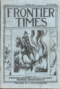 One windy November evening in 1894, a cow outfit struck camp just west of the Pecos River near old Fort Sumner, New Mexico. The cook allowed the camp fire to get away from him and it started up a draw where the outfit was corralled. Then it headed east for the plains country, helped by a wind blowing fifty miles an hour from the west. There had been heavy rains during the summer and the grass had grown luxuriantly. Ranchers and settlers at that time had very few fire guards. During the winter season the wind was nearly always from the west, blowing at a fifty or sixty-mile clip. Of course this made it difficult to stop prairie fires. This time the wind blew a regular hurricane for three days and nights and that fire swept through the eastern part of New Mexico, into western Texas. This story describes the details.